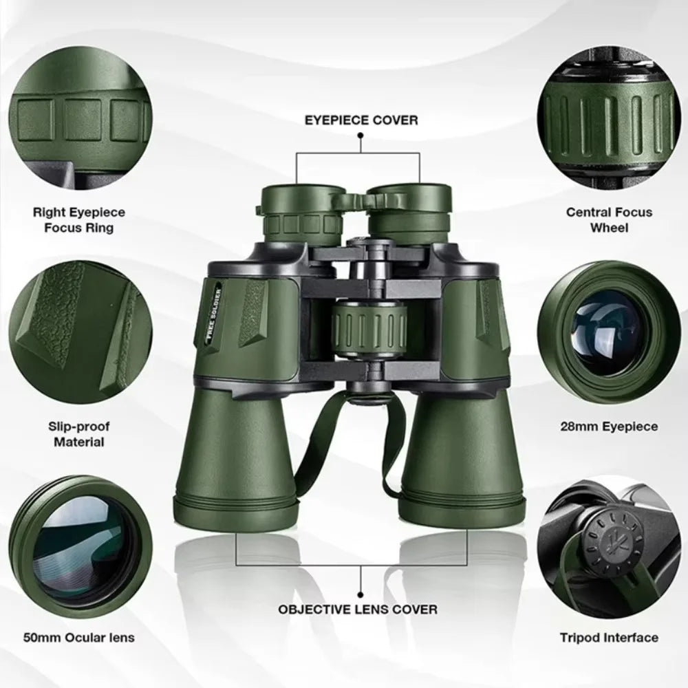 50000M German Military 20X50 Zoom HD BAK4-Prism Powerful Binoculars Long Range Professional Telescope For Outdoor Camping Travel