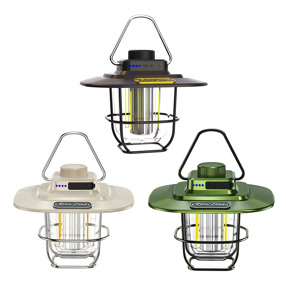 Mini Vintage Metal Hanging Lanterns 2000mAh Portable Camping Lamp USB Rechargeable Waterproof Outdoor Garden Lamp Tent Light