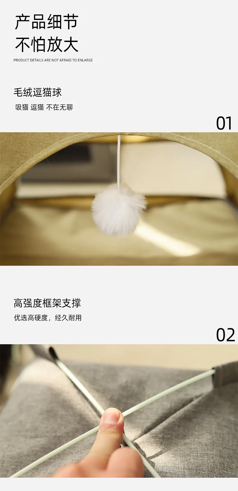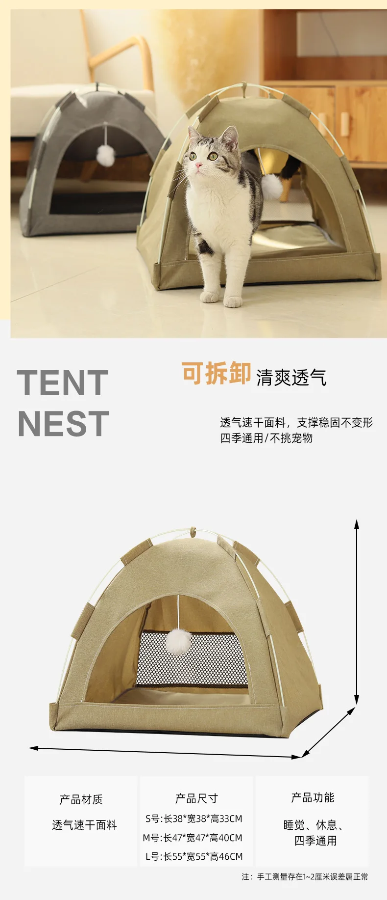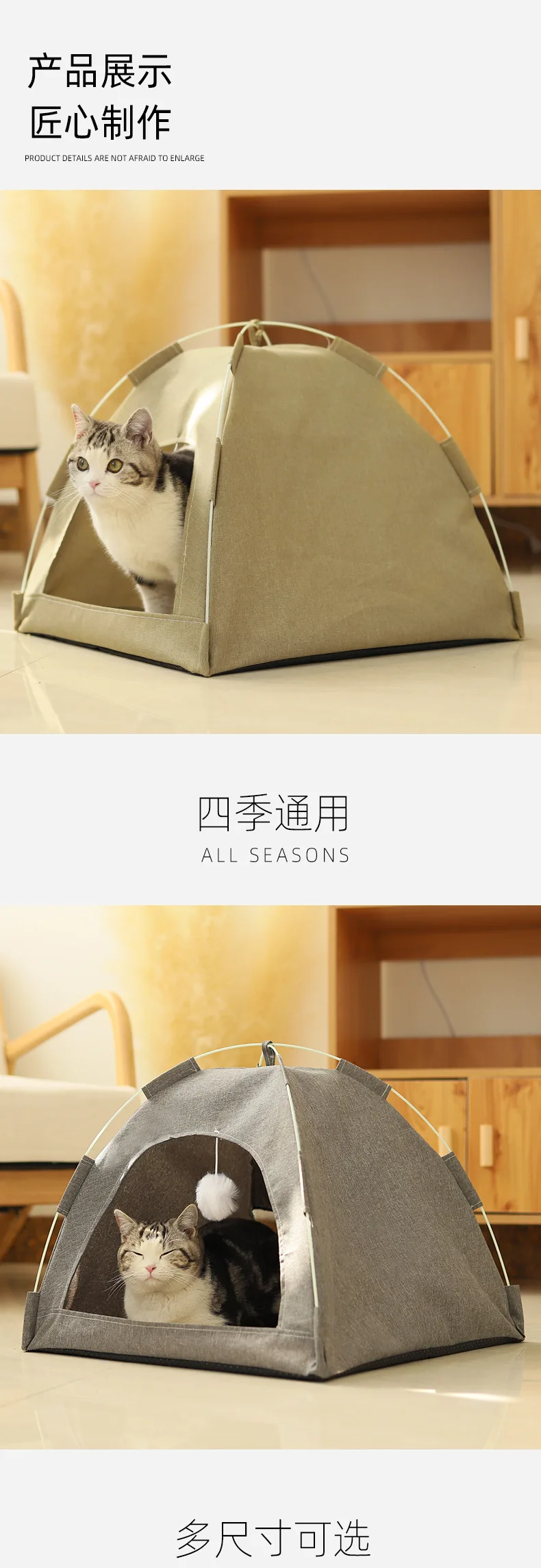 Pet Tent Bed Removable Cat Sofa Basket Canvas Semi-enclosed Cat House Dog Cave Hut Cat Sleeping Bed for Room Decor Pet Supplies