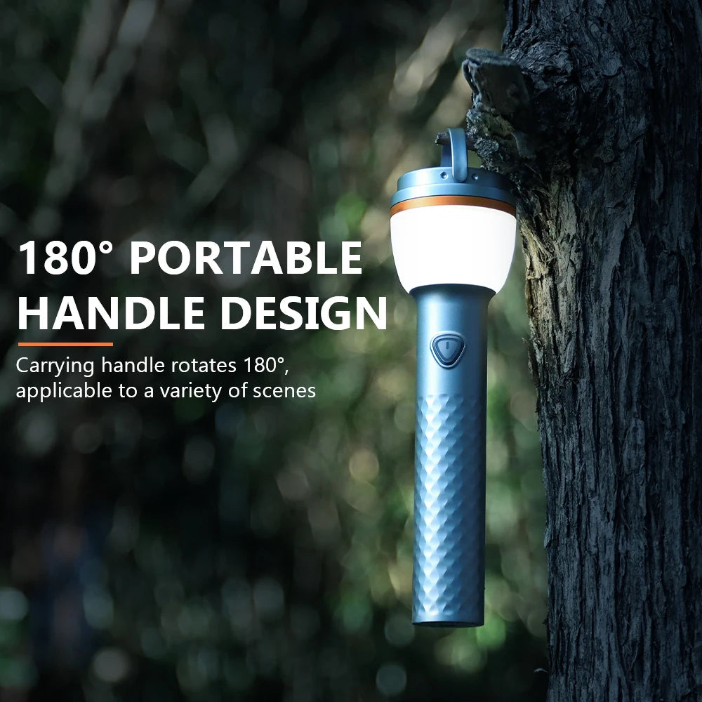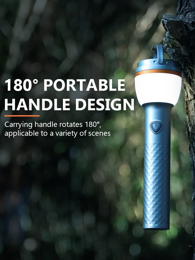 The shell is made of aluminum alloy, with strong magnetic adsorption to adapt to challenging environments. It can adhere to metal surfaces such as car bodies and can also be screwed onto a retractable tripod for use. Compact and lightweight, it features a power indicator: the green light indicates full power, the orange light indicates remaining power, and the red light indicates low power. Suitable for camping, car repair, power outage emergencies, etc.