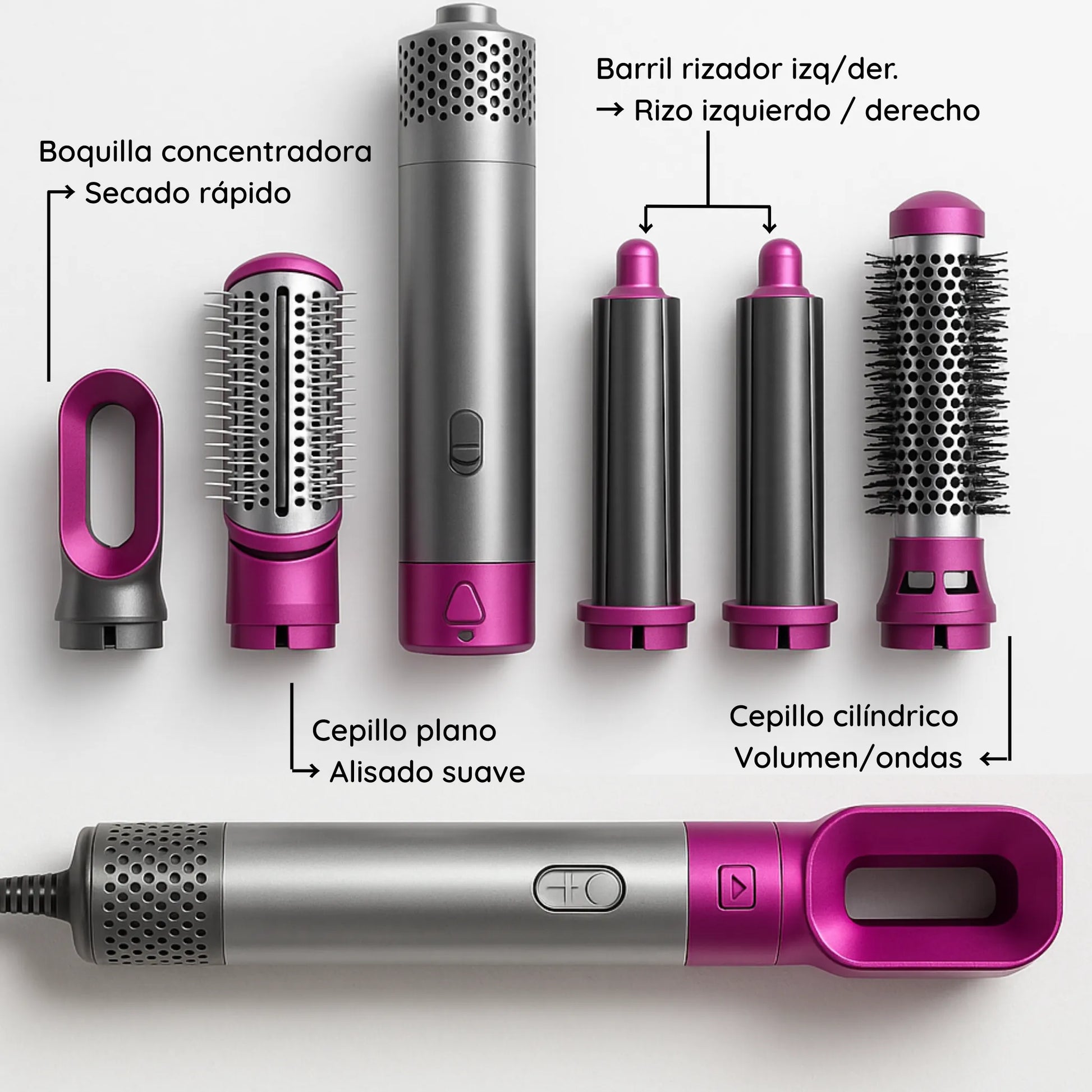 Seca, alisa y crea rizos u ondas con un solo equipo. Optimiza tu rutina y sal con el look que querés en minutos.