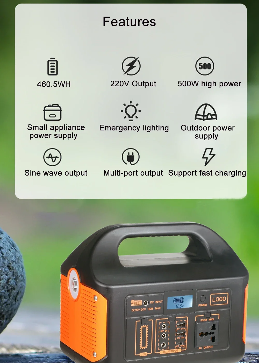 Solar Generator 460Wh Portable Power Station 300W 500WLiFePo4 Batteries 110V 220V Energy Storage Supply LED For Camping RV Trip