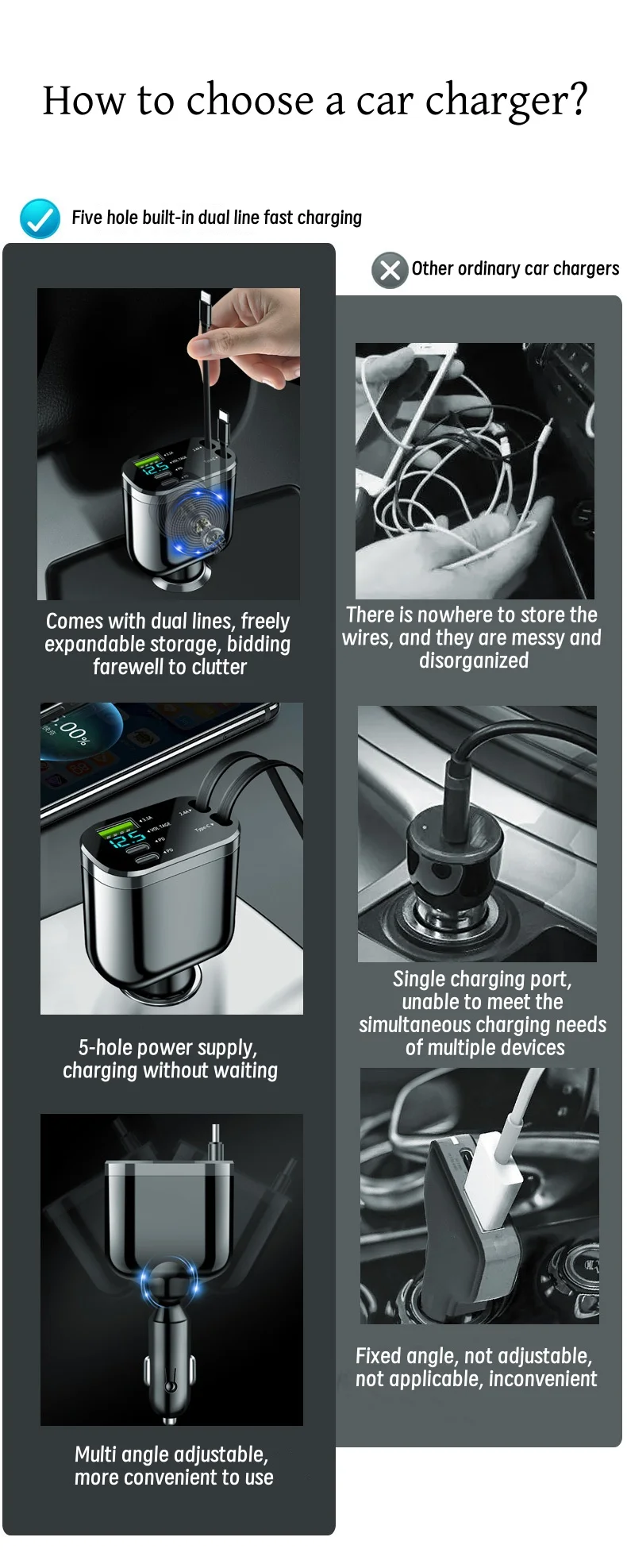 Ultra Fast Charging Five in One USB Car Phone Charger with Intelligent Digital Display and Dual PD Ports for Voltage Display